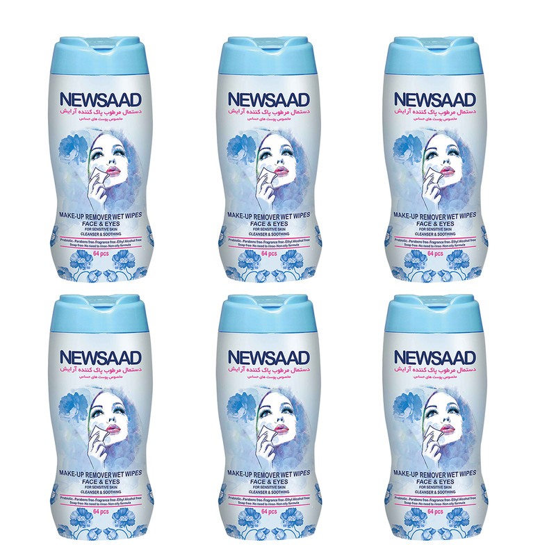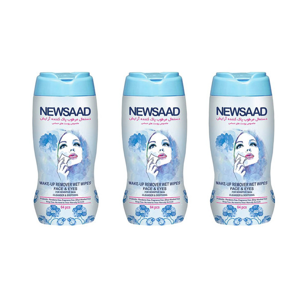 دستمال مرطوب پاک کننده آرایش نیوساد مدل Sensitive بسته 64 عددی