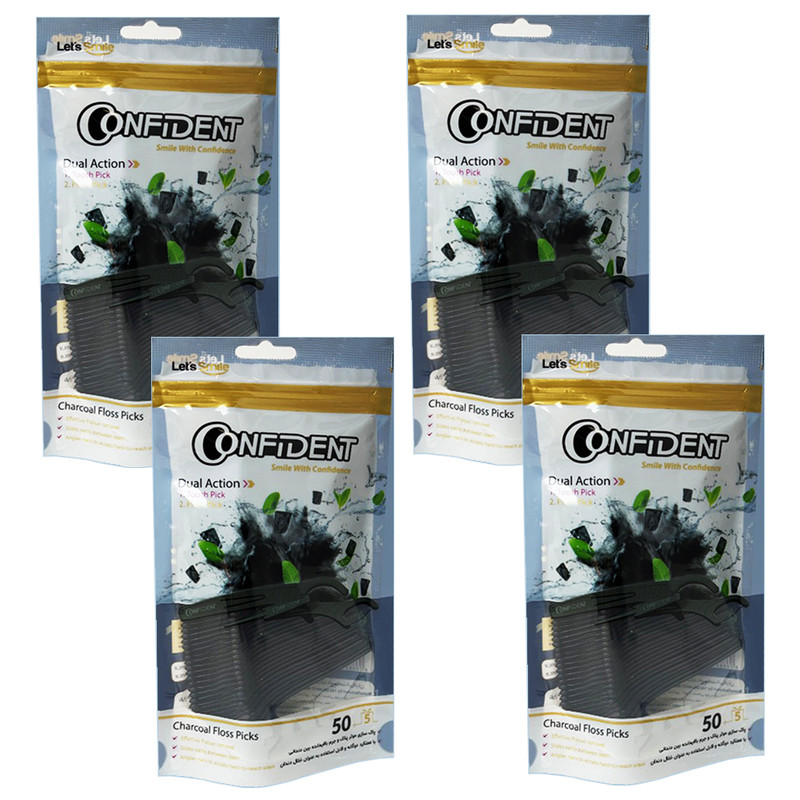 نخ دندان کانفیدنت مدل ذغالی کمانی مجموعه 4 عددی