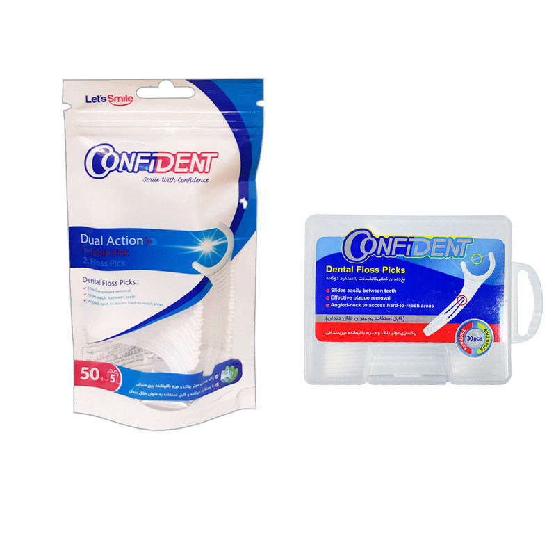 نخ دندان کانفیدنت مدل کمانی بسته 50 عددی به همراه نخ دندان کانفیدنت مدل کمانی بسته 30 عددی