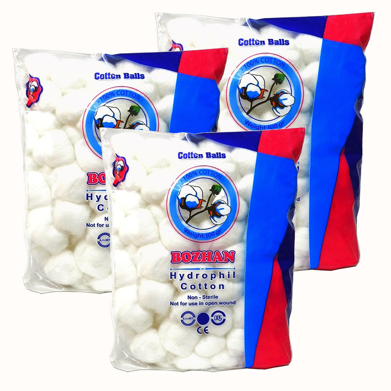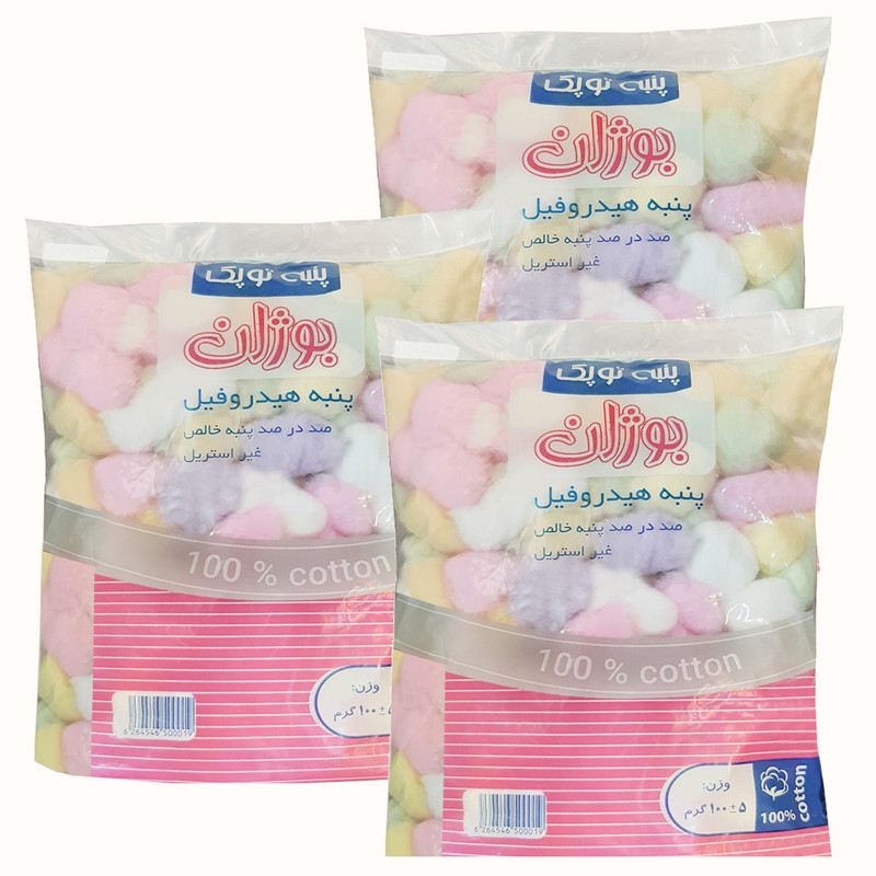 پنبه آرایشی پنبه هیدروفیل بوژان مدل توپی وزن 100 گرم مجموعه 3 عددی
