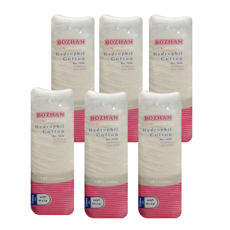 پنبه هیدروفیل بوژان مدل Cotton وزن 50 گرم مجموعه 6 عددی