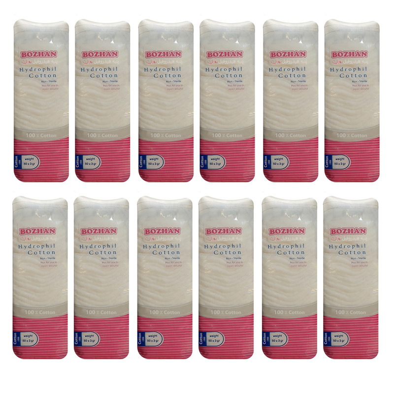 پنبه هیدروفیل بوژان مدل Cotton وزن 50 گرم مجموعه 12 عددی