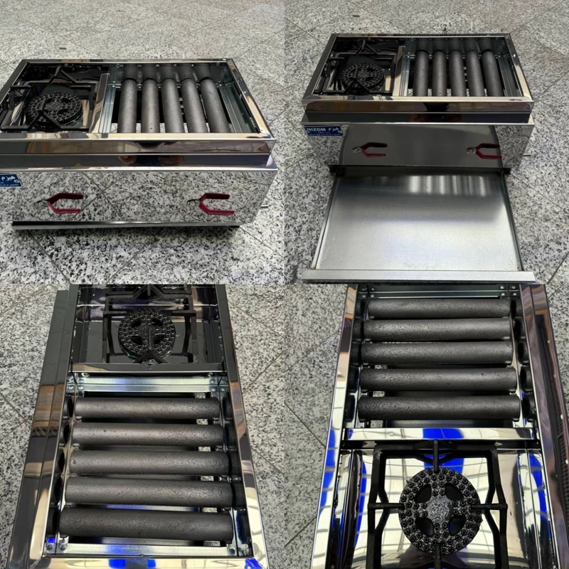 کبابپز گازی ( منقل گازی ) پلوپز دار 5 شعله استیل هیزم (پس کرایه)
