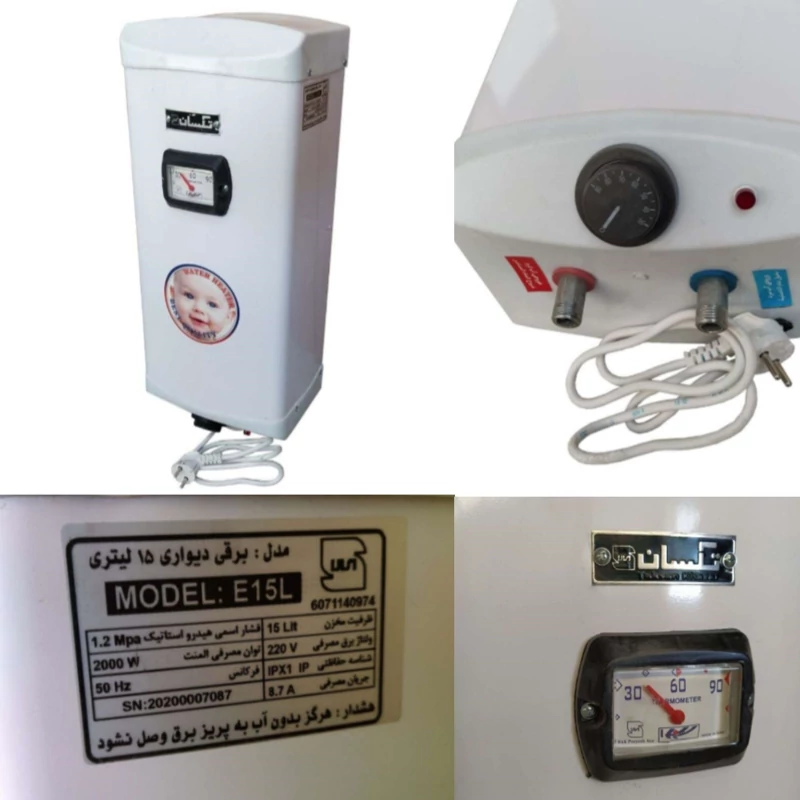 آبگرمکن برقی دیواری 15 لیتری مخزنی تکسان ورق 4 میل سفارشی (پس کرایه)