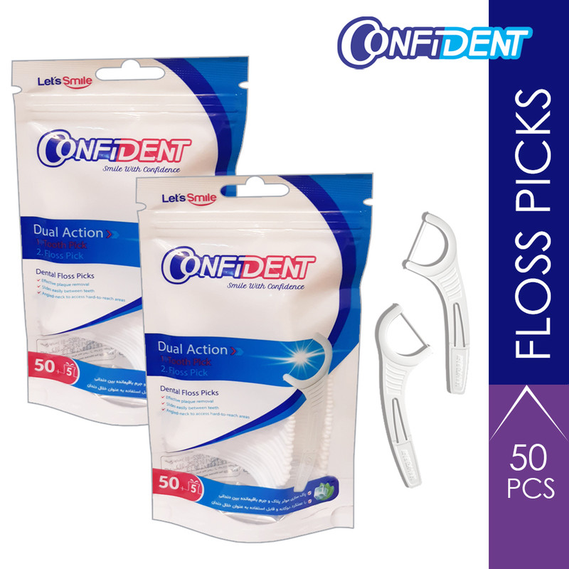 شما مصرف کننده عزیز و گرامی با خرید این پکیج مقرون به صرفه و عالی، تعداد 2 بسته 50 عددی( به عبارتی 100 عدد) نخ دندان کمانی کانفیدنت با عملکرد دوگانه ( نخ دندان+ خلال دندان) تحویل می گیرید. نخ دندان خلالی کانفیدنت مناسب انواع دندان و یک تمیز کننده بسیار عالی برای سطوحی از دندان که مسواک قادر به نفوذ و تمیز کردن آن ها نیست، می باشد. این محصول، به دلیل ساخت و ظاهر هوشمندانه و تماس نداشتن دست با نخ دندان از نخ دندان های معمولی دیگر بهداشتی تر می باشد و همچنین قسمت پایین این نخ دندان خلالی، از نخ جدا و تبدیل به یک خلال ، برای خلال بین دندانی می گردد. نخ دندان خلالی کانفیدنت علاوه بر اینکه مناسب دندان های زیبا شما هستند برا ی دندان هایی که ارتودنسی، کامپوزیت، لامینت و زیرکونیوم شده اند نیز بسیار کارآمد می باشد.