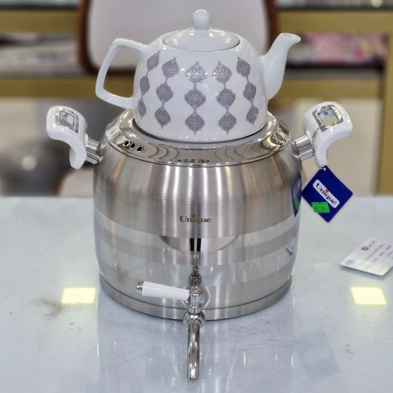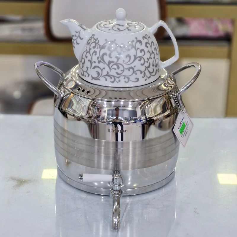 کتری و قوری یونیک شرکتی با گارانتی 18ماهه استیل 18/10 کف چدن ضخیم داخل یک تیکه