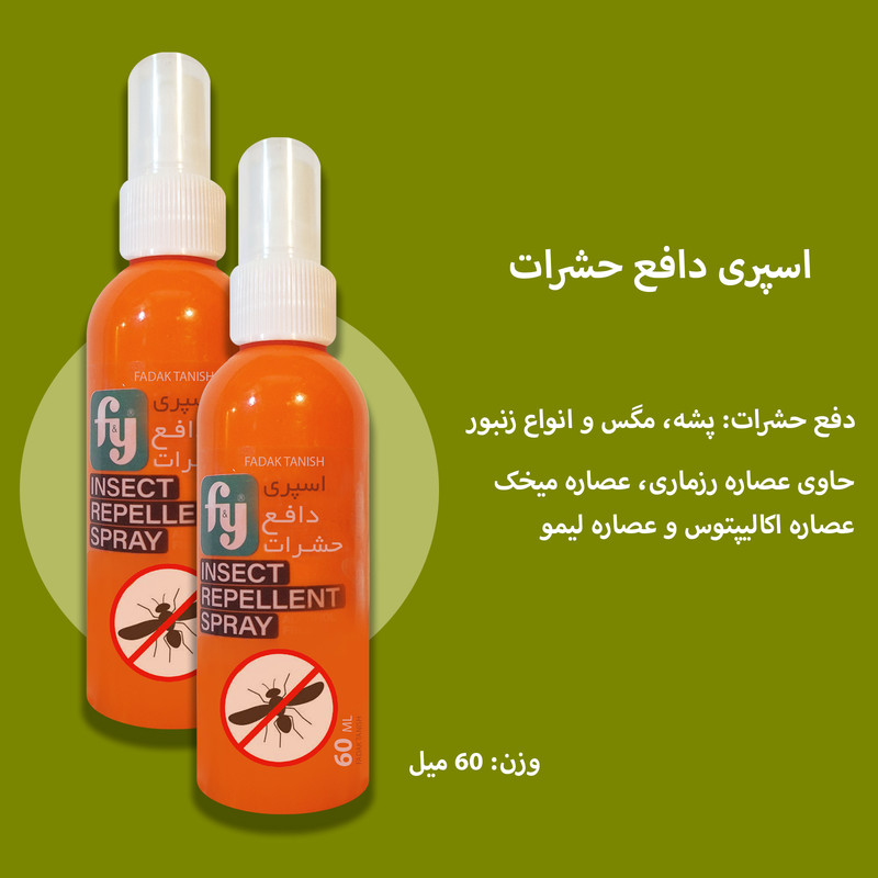 اسپری بدن ضد حشره فدک تانیش مدل Fy2 مناسب برای انواع پوست حجم 60 میلی لیتر مجموعه 2 عددی