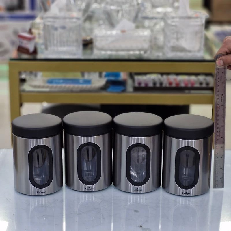 ست چهار تیکه حبوبات یونیک اصلی یک کیلویی جلو پنجره دار استیل اصل ضد زنگ و سیاهی و اثر انگشت و لک 24 ماه گارانتی