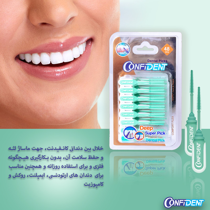 بهداشت و مراقبت از دندان ها علاوه بر اینکه در داشتن ظاهری آراسته موثر است، باعث حفظ سلامتی دندان ها نیز می شود. خلال بین دندانی کانفیدنت مدل دیپ سوپر پیک، مکمل مسواک است و باعث پاکسازی کامل دندان ها می شود. از این محصول برای تمیز کردن فواصل بین دندانی استفاده می شود. این خلال بین دندانی دارای پوشش فلورایدی می باشد. در ساخت این محصول از هیچگونه فلزی استفاده نگردیده است و به نرمی و با حرکت بسیار ایمن بین دندان ها حرکت می کند. استفاده از این خلال دندانی باقی مانده مواد غذایی و پلاک میکروبی را از بین می برد. خلال بین دندانی کانفیدنت مدل دیپ سوپر پیک علاوه بر پاکسازی دندان ها، مانند ماساژورعمل کرده و باعث افزایش جریان خون و حفظ سلامت لثه ها می شود. سر باریک مخروطی شکل این خلال به گونه ای طراحی شده تا به بهترین شکل پلاک میکروبی را پاکسازی کند. افرادی که دارای ارتودنسی، بریج و یا ایمپلنت هستند هم میتواند به راحتی از این محصول استفاده کنند. این محصول در بسته بندی 48عددی همراه با جعبهی محافظ آنتی باکتریال می باشد که امکان به همراه داشتن این خلالی دندان را در هر موقعیتی برای شما فراهم میکند. خلال بین دندانی کانفیدنت مدل دیپ سوپر پیک، برای تمام افراد مناسب است. با استفاده از این خلال می توانید نقاط دور از دسترس دهان را نیز تمیز کنید.