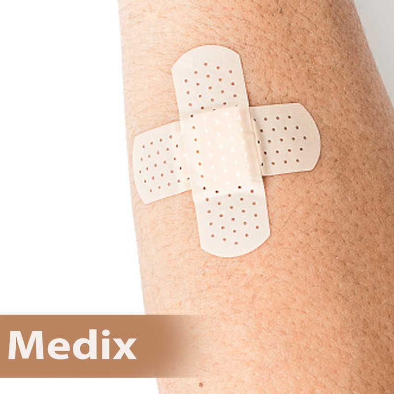 چسب زخم مدیکس اولین چسب زخم استریل شده ایرانی می باشد که با پروانه بهداشت 14891522 و با مدیریت تحت گواهینامه ایزو 9001 و ایزو 13485 تولید شده است. چسب زخم پارچه ای ضد حساسیت مدیکس دارای ویژگی کششی با الیاف نازک است، به زخم نمی چسبد و براحتی از روی پست جدا می شود. کاملا استریل شده و سپس بسته بندی شده است. بخاطر پارچه ای بودن چسب زخم مدیکس و همچنین دارا بودن منافظ ریز روی نوار، پوست عرق نمی کند و از خیس شدن چسب و زخم جلوگیری می کند. با حرکت بدن انعطاف می یابد و دارای مواد نرم و با قابلیت تنفس پوست می باشد که برای فعالیت های روزمره مثل یوگا، کار با کامپیوتر و فعالیت های سبک خارج از خانه ایده آل می باشد. فرم منحصر به فرد و قابلیت ضد آبی آن، آلودگی و میکروب ها را که ممکن است باعث عفونت شوند، از زخم دور نگه می دارد.