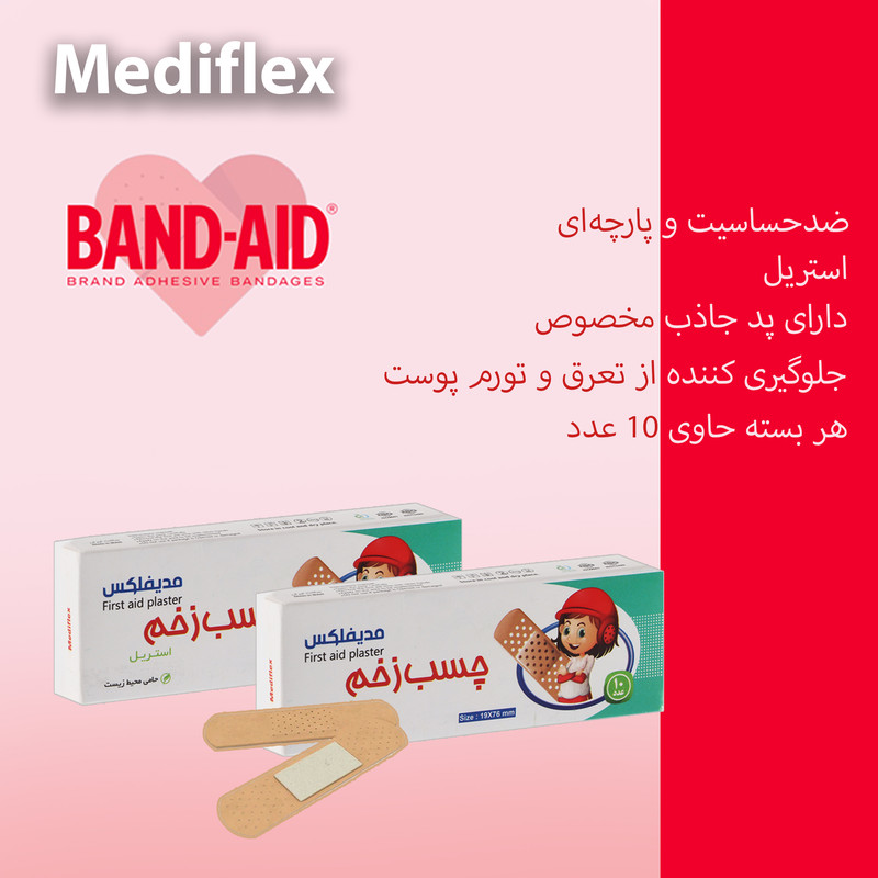 چسب زخم پارچهای و ضد حساسیت 10 عددی مدیفلکس ، دارای ویژگی کششی با الیاف نازک است، به زخم نمیچسبد و به راحتی از روی پوست جدا میشود. این چسب زخم کاملا استریل بوده و بستهبندی بهداشتی دارد. چسب زخم 10 عددی مدیفلکس به دلیل چنس پارچهای خود و همچنین داشتن منافذ ریز روی نوار، باعث تعریق نخواهد شد و از خیس شدن چسب و مهمتر از آن از ایجاد رطوبت روی زخم جلوگیری میکند. این چسب قابلانعطاف است و بر اثر فعالیت از روی پوست جدا نمیشود. چسب زخم 10 عددی مدیفلکس، دارای مواد نرم و با قابلیت تنفس پوست بوده که آن را برای فعالیتهای روزمره مثل یوگا، کار با کامپیوتر و فعالیتهای سبک خارج از منزل ایدهآل می باشد. طراحی خوب و ویژگی ضدآب بودن این محصول، از رسیدن آلودگی و میکروبها به زخم و ایجاد عفونت جلوگیری میکند. چسب زخم 10 عددی مدیفلکس دارای مجوز از سازمان غذا و دارو است.