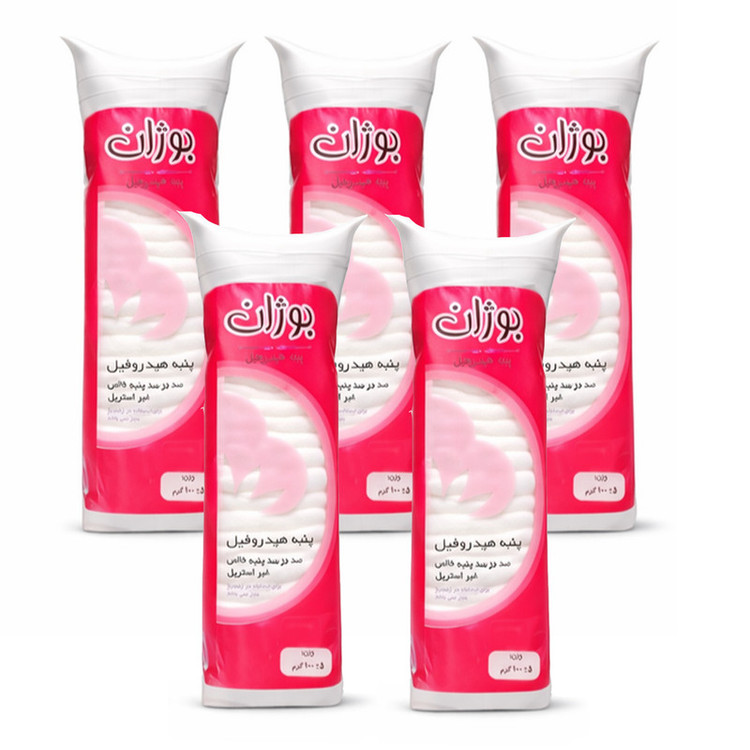 سایر توضیحات : مجموعه 5 عددی ( وزن هر بسته 100 گرم پنبه خالص) هیدروفیل – و غیر استریل قدرت جذب بالا دارای مهر استاندارد و مجوز بهداشت و سیب سلامت گزینهای مناسب برای استفادههای آرایشی و بهداشتی مقرون به صرفه