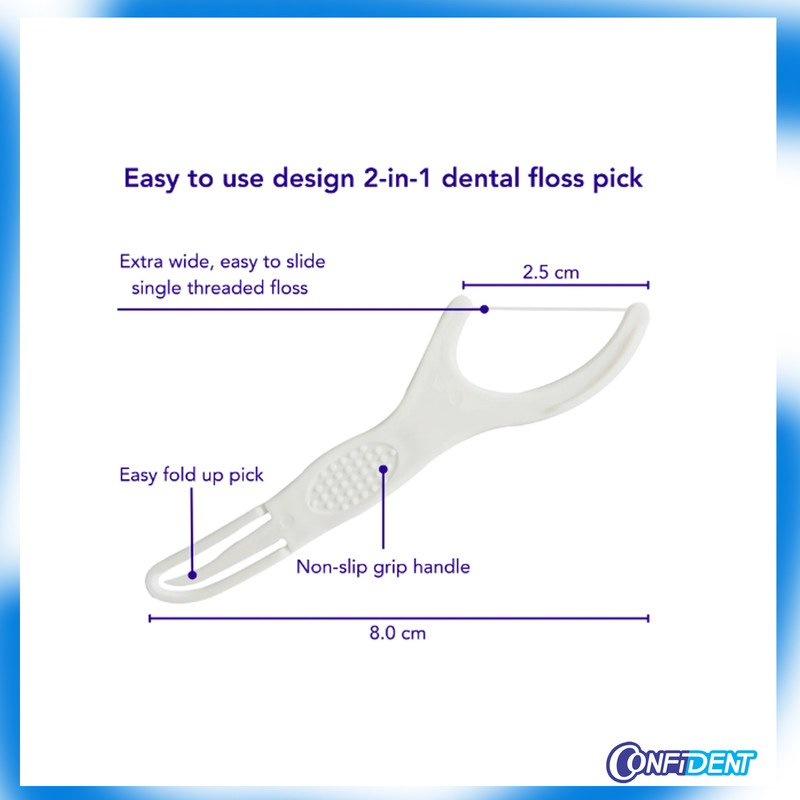 شما مصرف کننده عزیز و گرامی با خرید این پکیج سوپر مقرون به صرفه و عالی، تعداد 36 بسته 50 عددی( به عبارتی 200 عدد) نخ دندان کمانی کانفیدنت با عملکرد دوگانه ( نخ دندان+ خلال دندان) تحویل می گیرید. نخ دندان خلالی کانفیدنت مناسب انواع دندان و یک تمیز کننده بسیار عالی برای سطوحی از دندان که مسواک قادر به نفوذ و تمیز کردن آن ها نیست، می باشد. این محصول، به دلیل ساخت و ظاهر هوشمندانه و تماس نداشتن دست با نخ دندان از نخ دندان های معمولی دیگر بهداشتی تر می باشد و همچنین قسمت پایین این نخ دندان خلالی، از نخ جدا و تبدیل به یک خلال ، برای خلال بین دندانی می گردد. نخ دندان خلالی کانفیدنت علاوه بر اینکه مناسب دندان های زیبا شما هستند برا ی دندان هایی که ارتودنسی، کامپوزیت، لامینت و زیرکونیوم شده اند نیز بسیار کارآمد می باشد.