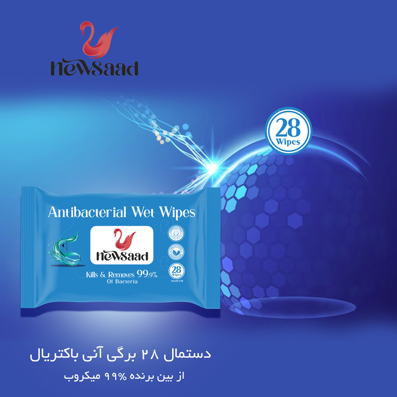 دستمال مرطوب آنتی باکتریال 28 عددی نیوساد یک گزینهی کاربردی و بهداشتی برای تمیز کردن دست و صورت و هرزمان و مکانی که شما به آب و صابون دسترسی ندارید مانند مدرسه، محل کار، باشگاه های ورزشی، سرویس های بهداشتی، مسافرت و سایر امکان عمومی کاربرد دارد. دستمال مرطوب آنتی باکتریال 28 عددی نیوساد، جهت ضدعفونی کردن دست ها برای جلوگیری از بیمارهای قابل انتقال و برای تمیز نمودن دست و صورت قبل و بعد از صرف غذا به کار میرود. دستمال مرطوب آنتی باکتریال 28 عددی نیوساد، حاوی عصاره خیار است که خاصیت خنککنندگی و آرامبخشی دارد - دارای مواد مرطوبکننده و آبرسان برای جلوگیری از خشکی پوست - فاقد الکل و مواد صابونی است، بنابراین برای پوستهای حساس هم مناسب است و همچنین با با شی باتر غنی شده که به نرمی و لطافت پوست کمک میکند.