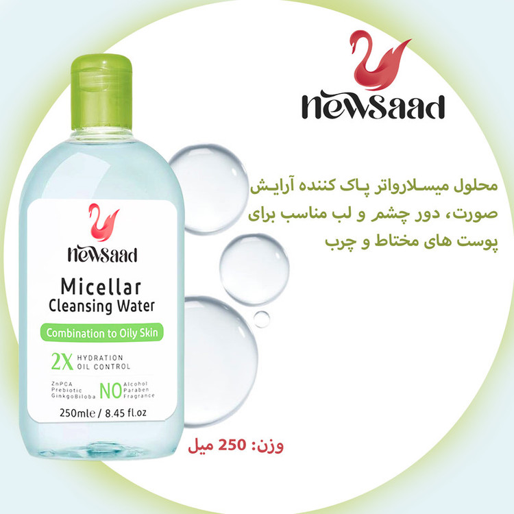 راهنمای استفاده : ابتدا مقداری میسلار واتر نیوساد را روی پد پنبه ای ریخته و با استفاده از آن کل آرایش صورت خود را پاک کنید.