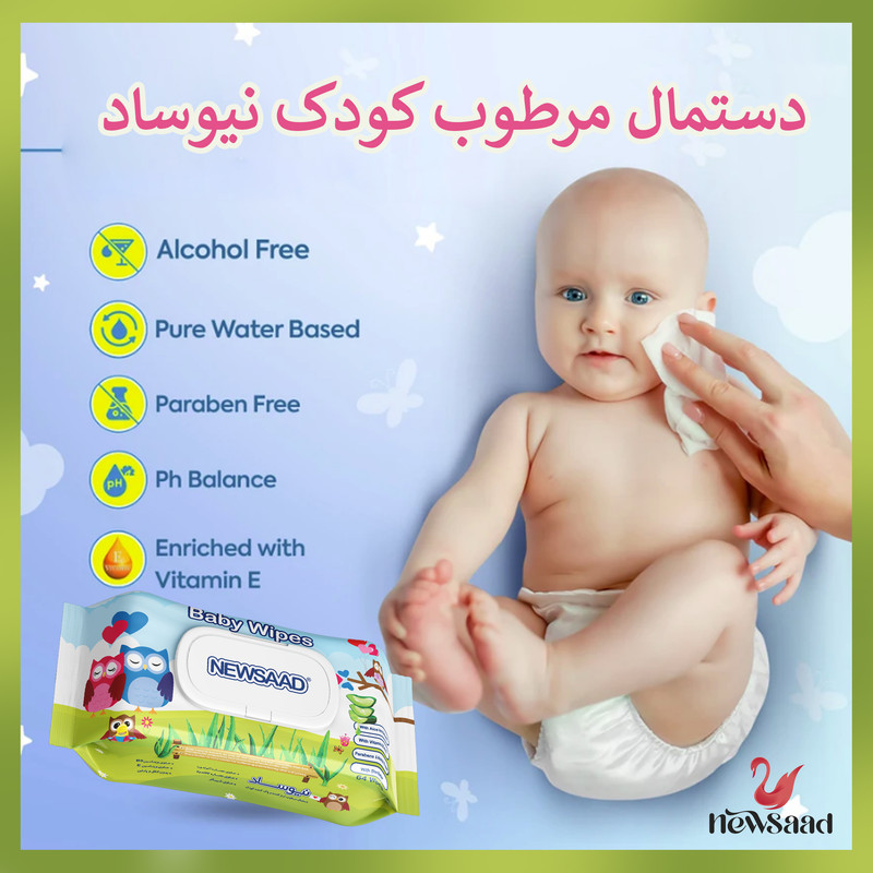 دستمال مرطوب کودک نیوساد مدل Happu Owl دوازده بسته 64 عددی