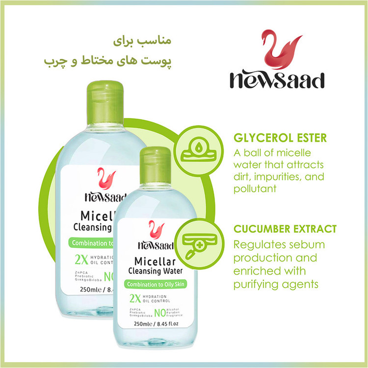 نوع پاک کننده آرایش صورت : میسلار واتر