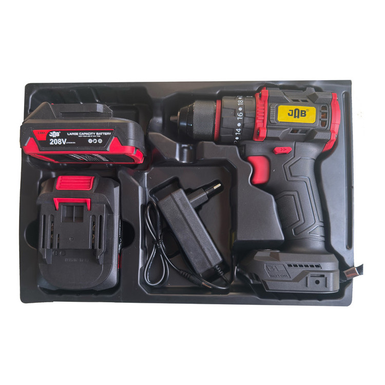 دریل پیچ گوشتی چکشی شارژی براشلس 10 میلی متری 208 ولت جاب مدل JB-208 PRO JAB مجموعه 4 عددی