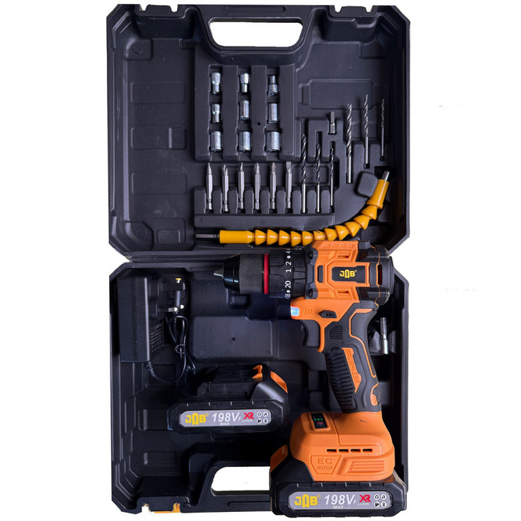 دریل پیچ گوشتی چکشی شارژی سه نظام فلزی 10 میلیمتر 198 ولت جاب مدل JB-Netlix 198 مجموعه 30 عددی