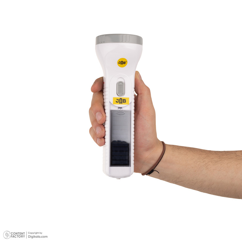 چراغ قوه مدل JB-White 220 ساخت برند جاب یک محصول کاربردی جهت استفاده در کمپینگ، کوهنوردی، مسافرت، طبیعت گردی و… است. در داخل محفظه چراغ قوه یک عدد لامپ LED تعبیه شده که نور ساطع شده از آن مهتابی بوده و میزان روشنایی به 50 لومن می رسد، همچنین قابلیت تنظیم حالت نوردهی به صورت پر نور و کم نور داشته و توان خروجی کلی آن معادل 1 وات است. چراغ قوه مجهز به یک باتری داخلی با ظرفیت 750 میلی آمپر ساعت می باشد که مدت زمان شارژدهی آن حدود 3 ساعت به صورت نور قوی و 7 ساعت در حالت نور متعادل خواهد بود. محصول بدنه ای از جنس پلاستیک مقاوم و سبک داشته و بر روی آن یک نشانگر LED جهت نمایش وضعیت شارژ قرار داده شده است، پس از اتمام شارژ باتری، قابلیت شارژ مجدد آن به وسیله دو شاخه داخلی تعبیه شده روی محصول با اتصال به برق شهری در طی 9 ساعت وجود دارد. علاوه بر این، از دیگر ویژگی های چراغ قوه JB-White 220 مجهز بودن به پنل خورشیدی جهت تامین انرژی دستگاه است.
