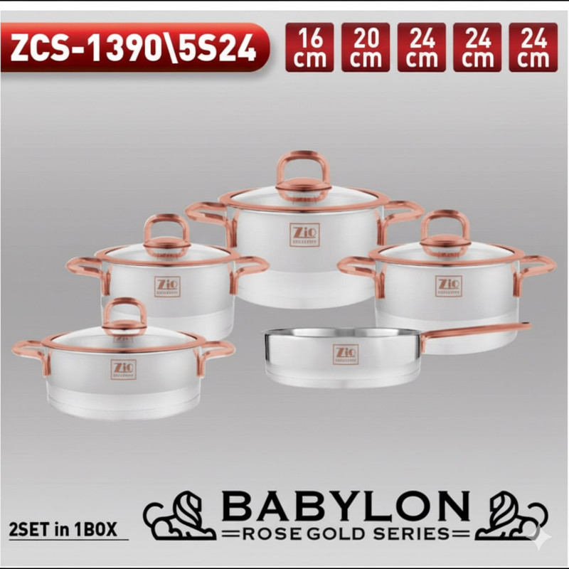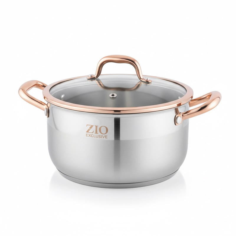 سرویس قابلمه ۹ پارچه زیو (ZIO) مدل ZCS-1390 استیل با جزئیات رزگلد (Rose Gold)