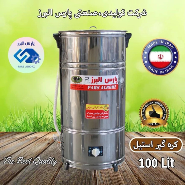 کره گیر و دوغ زن برقی تایمردار 100 لیتری استیل (پس کرایه)