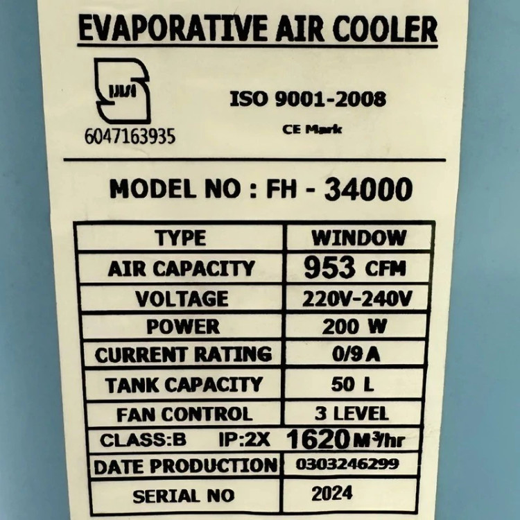 ✅حجم کولر 3500 CFM(فوت مکعب بر دقیقه)