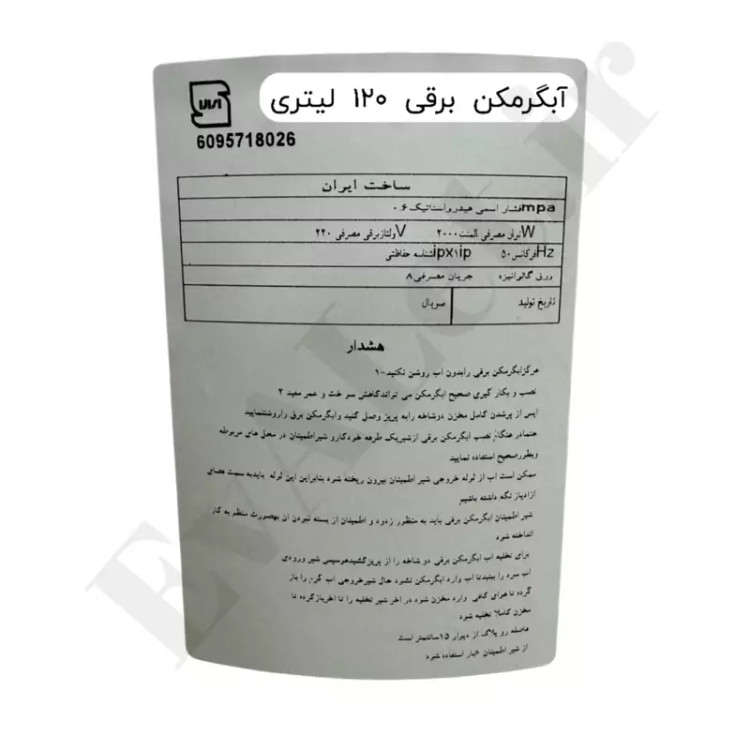 آبگرمکن برقی مخزنی ایستاده جنرال مدل L120 (پس کرایه)