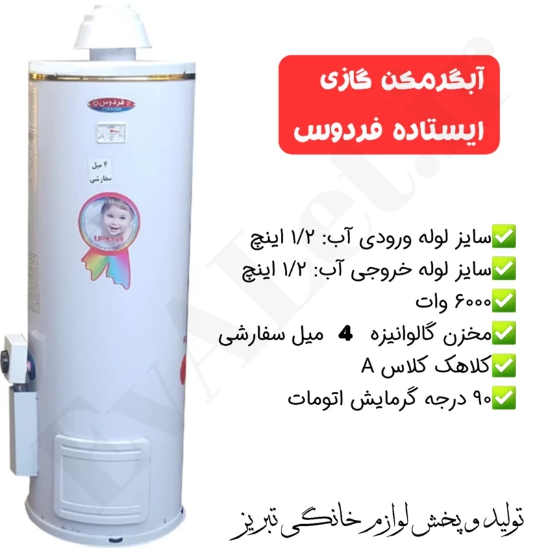 ↩️نام کالا :#آبگرمکن_گازی مخزن دار ایستاده زمینی #فردوس