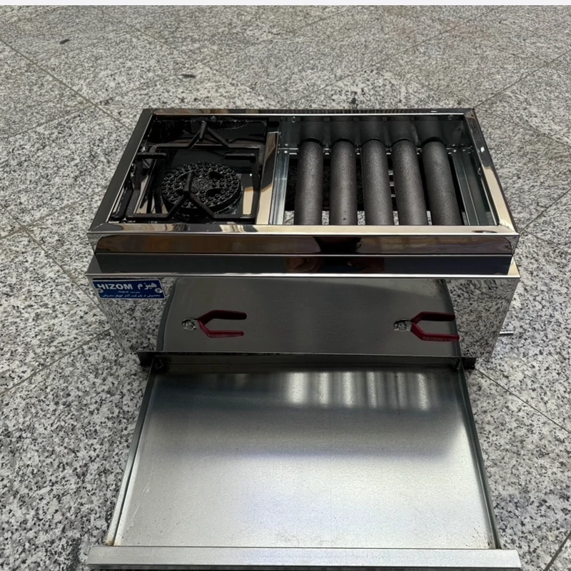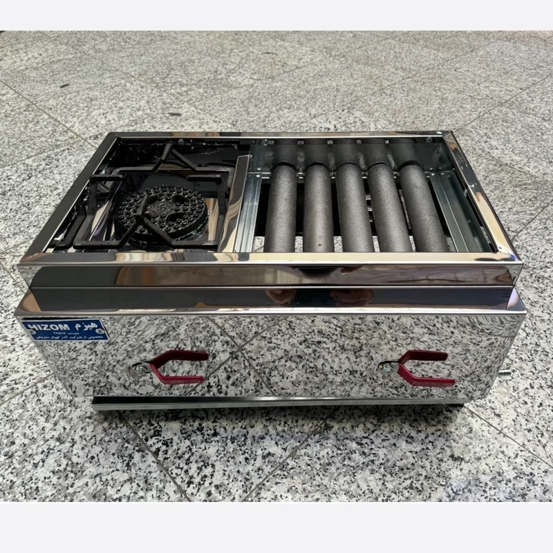 کبابپز گازی ( منقل گازی ) پلوپز دار 5 شعله استیل هیزم (پس کرایه)