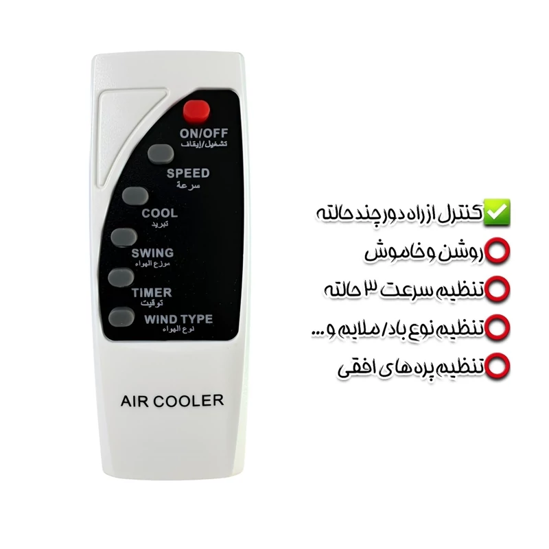 ✅کنترل از راه دور (حالت های تنظیم باد، تنظیم پره افقی، تنظیم نوع باد، روشن و خاموش شدن و تایم کولر)