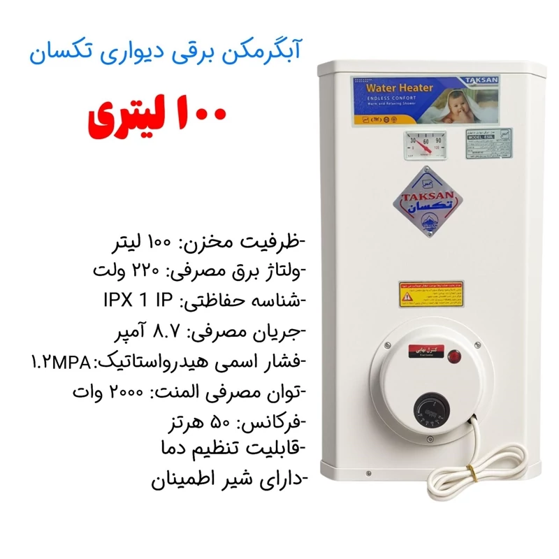 آبگرمکن برقی 4 میل سفارشی تکسان مدل L100 (پس کرایه)
