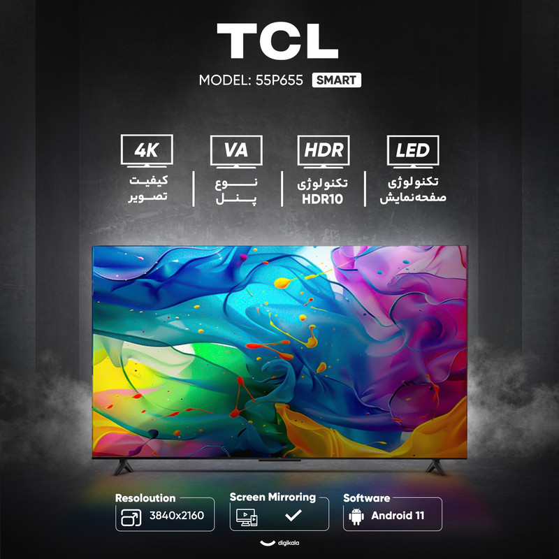 تلویزیون ال ای دی هوشمند تی سی ال مدل 55P655 یکی از مدلهای پیشرفته و کارآمد این برند است که با صفحه نمایش ۵۵ اینچی و وضوح تصویر Ultra HD - 4K، تجربهای بینظیر از تماشای فیلم و برنامههای تلویزیونی را ارائه میدهد. این تلویزیون با استفاده از پنل VA و پشتیبانی از فناوری HDR10، رنگها را با دقت بالا نمایش داده و تصاویر را با کنتراست بهینه و جزئیات دقیق ارائه میکند. سیستمعامل اندروید ۱۱ این تلویزیون امکانات متعددی از جمله دسترسی به اپلیکیشنهای اندرویدی، مرور وب و قابلیت نصب بازی را در اختیار کاربران قرار میدهد. علاوه بر این، فناوری Screen Mirroring امکان اشتراکگذاری محتوای گوشی یا تبلت را روی صفحه نمایش فراهم ساخته است و کار با این دستگاه را لذتبخشتر میکند. از نظر کیفیت صدا، این مدل دارای دو بلندگوی ۱۰ واتی با مجموع توان خروجی ۲۰ وات است که به همراه فناوری Dolby Stereo و صدای سهبعدی فراگیر، تجربه صوتی جذاب و واضحی را ارائه میدهد. در بخش اتصالات، تلویزیون تی سی ال 55P655 دارای سه درگاه HDMI، یک درگاه USB 2.0، ورودی کامپوزیت، خروجی صدای دیجیتال، پورت LAN، بلوتوث نسخه ۵.۰ و Wi-Fi است که امکان اتصال به انواع دستگاههای جانبی را به راحتی فراهم میکند. همچنین، قابلیتهای Time Shift، ضبط برنامه و پشتیبانی از زیرنویس، از دیگر امکانات کاربردی این تلویزیون محسوب میشوند. این تلویزیون با گرید انرژی A+، مصرف برق بهینهای دارد و طراحی باریک و مدرن آن، جلوهای زیبا به محیط میبخشد. با توجه به کیفیت تصویر بالا، سیستم صوتی پیشرفته و امکانات هوشمند متنوع، مدل55P655 یک انتخاب عالی برای کسانی است که به دنبال تلویزیونی پیشرفته، مقرون به صرفه و پرامکانات هستند.