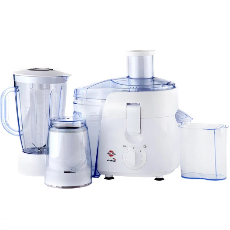 آبمیوهگیریها با توجه به کاراییشان به دو دسته تک کاره و چند کاره تقسیم میشوند. VitaFruit یکی از مقرون به صرفهترین آبمیوه گیریهای سه کاره قابل تهیه در بازار است. پیشنهاد میشود اگر به دنبال یک آبمیوه گیری سه کاره ارزان قیمت هستید این مدل از آبمیوهگیریهای پارسخزر را هم در لیست بررسی و خرید خود قرار دهید. کاربران میتوانند با خیال راحت این محصول را تهیه کرده و وقت خود را صرف تهیه نوشیدنیهای مختلف با آن کنند. این مدل قادر است با موتور 450 واتی خود آبگیری انواع میوهها را به راحتی انجام دهد، علاوه بر این با پارچ مخلوط کن 1.5 لیتری این مدل قادر خواهید بود انواع نوشیدنیها و سسها از شیکها گرفته تا مایونز را به راحتی تهیه نمایید. همچنین با سومین قابلیت این دستگاه میتوانید نسبت به آسیاب کردن انواع دانهها مثل فلفل سیاه اقدام کنید.
