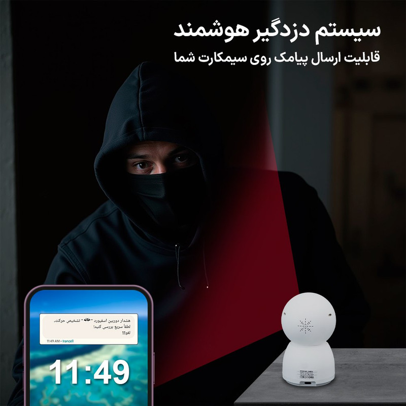 سیستم دزدگیر هوشمند این دوربین با قابلیت زمانبندی اتوماتیک، ارسال پیامک و پخش آژیر در صورت شناسایی حرکت یا انسان، آرامش خاطر شما را هنگام خالی بودن محل فراهم میکند. (این دوربین جهت استفاده با گوشی های اندرویدی توسعه یافته و در گوشیهای آیفون پشتیبانی نمیشود.)