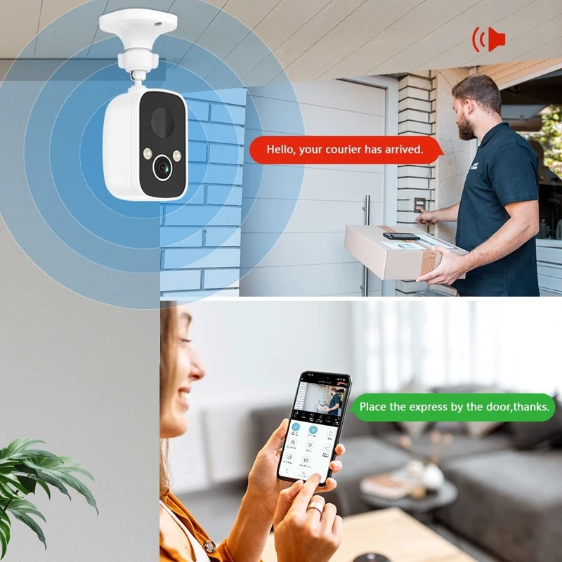 دوربین باطری دار سیم کارتی کوچک تحت شبکه مدل T4-4G دوربین مینی 2K رزولوشن 4 مگاپیکسل کنترل از راه دور قدرتمند بدون نیاز به VPN (نرم افزار ANDROID و IOS) باتری داخلی 5000 میلی آمپر ساعتی و 10 روز زمان آماده به کار نسخه 4G از اتصال سیم کارت 4G پشتیبانی می کند(همراه اول و ایرانسل) بدون نیاز به برق و مودم (حتما باید در محلی نصب شود که میزان آنتن دهی اینترنت در آن محل 4G باشد) هشدار تشخیص حرکت و عدم حضور انسان PIR دید در شب IR-Cut، چراغ های IR نامرئی و دید درشب رنگی warm light پشتیبانی از کارت حافظه تا 128 گیگابایت کارت TF و فضای ذخیره سازی ابری (ابر نیاز به پرداخت در برنامه دارد) رابط برق USB، می توان آن را توسط رایانه، پاوربانک یا شارژر همراه محصول به راحتی شارژ کرد زوم دیجیتال 10 برابر: این دوربین از زوم دیجیتال 10 برابری پشتیبانی می کند، تشخیص حرکت انسان PIR هوشمند این دوربین باتری بی سیم از یک حسگر حرکتی PIR بسیار حساس استفاده می کند که به سرعت بیدار می شود و تمام حرکات انسان را به طور پیوسته ثبت می کند، هشدارهای کاذب ناشی از باران و حشرات و غیره را به میزان قابل توجهی کاهش می دهد. دید در شب IR تا 10 متر 6 عدد ال ای دی مادون قرمز آرایه ای صدای واقعی دو طرفه میکروفون و بلندگو داخلی / بلندگوهای جدید سفارشی شده با صدای بلند. گزینه های ذخیره سازی انعطاف پذیر و ایمن پشتیبانی از اتصال سیم کارت 4G دسترسی از راه دور P2P / چند کاربره همین چشم انداز را با خانواده های خود به اشتراک بگذارید، بگذارید همه شما محافظت کنید و به خانه خود توجه بیشتری داشته باشید. توجه: این دستگاه ضدآب است.