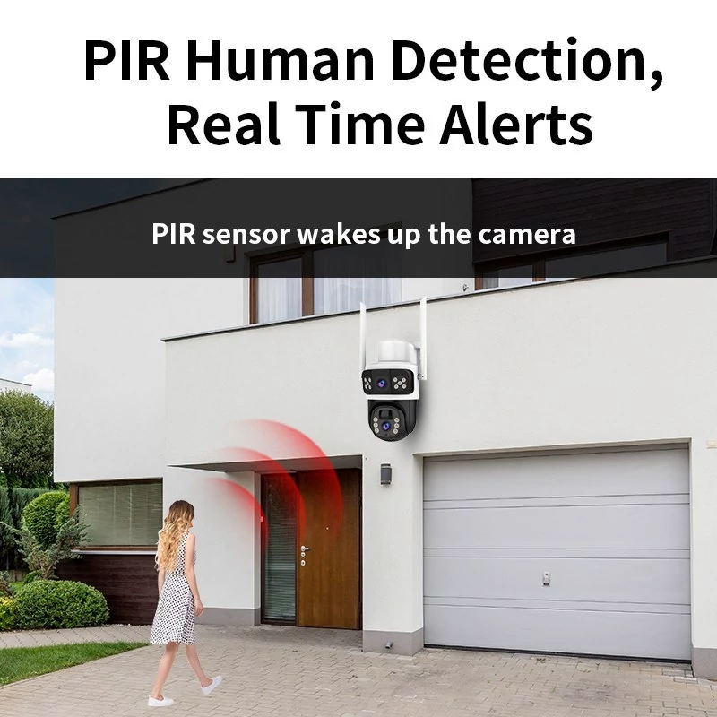 یکی از قابلیتهای مهم دوربین سولار دو لنز ، امکان مکالمه صوتی دو طرفه است. این ویژگی به شما اجازه میدهد علاوه بر مشاهده تصاویر زنده، با افرادی که در محل حضور دارند نیز گفتگو کنید. میکروفن و اسپیکر داخلی این دوربین خورشیدی سیمکارتی صدایی شفاف و بدون نویز را منتقل میکنند تا ارتباط شما کاملاً واقعی و روان باشد.