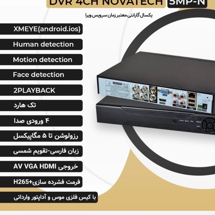 ✅دستگاه dvr 4 کانال 5 مگا پیکسل برند SONY HD (فرمت ضبط H265، قابلیت تشخیص چهره و حرکت ، زبان فارسی ، تقویم شمسی ، برنامه انتقال تصویر xmeye ،فول پورت، 4 ورودی صدا قابلیت انتقال تصویر روی موبایل و لپ تاپ)