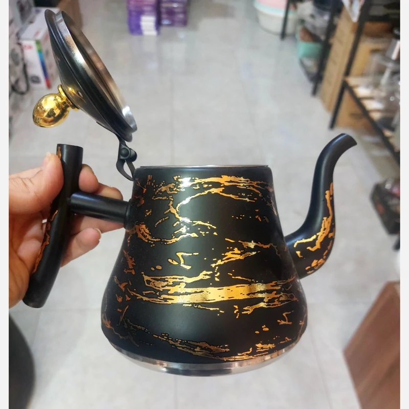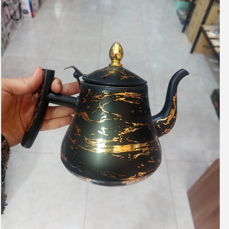 قوری استیل یونیک 1 لیتر 1ونیم لیتر 2 لیتر دارای توری رنگ سفید طلایی و مشکی طلایی سنگین و جنس عالی
