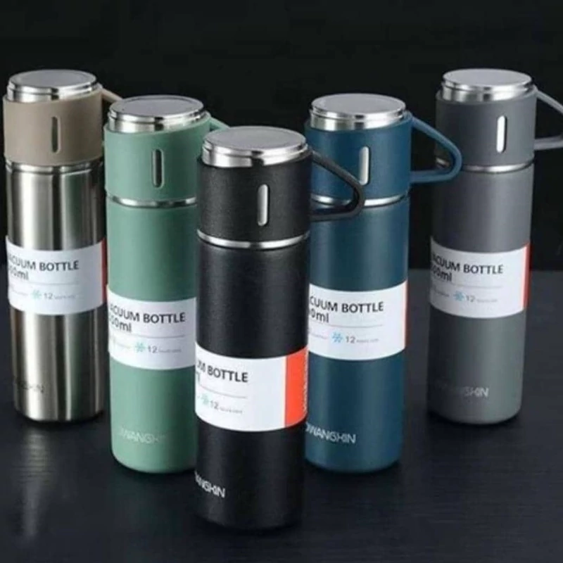 فلاسک استیل لیوان دار ۳ کاپ ظرفيت نیم لیتر دارای درب پیچی و ضد نشت مناسب قهوه و انواع نوشیدنی سرد و گرم