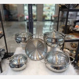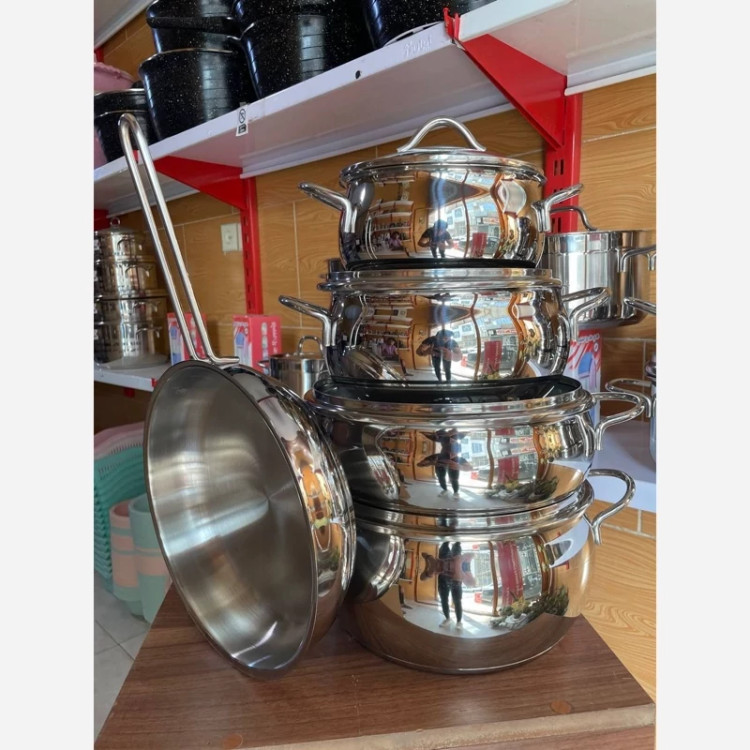 4 عدد قابلمه دربدار و یک عدد تابه میباشد. قابلمهها دارای ظرفیتهای 2، 3.5، 3.8 و 6.3 لیتر و به ترتیب ابعاد 24×8 ،20×12 ،16×10 و 24×14 سانتیمتری دارند.