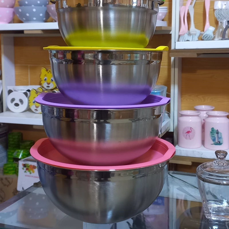 لگن درب رنگی جنس بدنه استیل جنس درب ها پلاستیک 5 تکه دارای جعبه