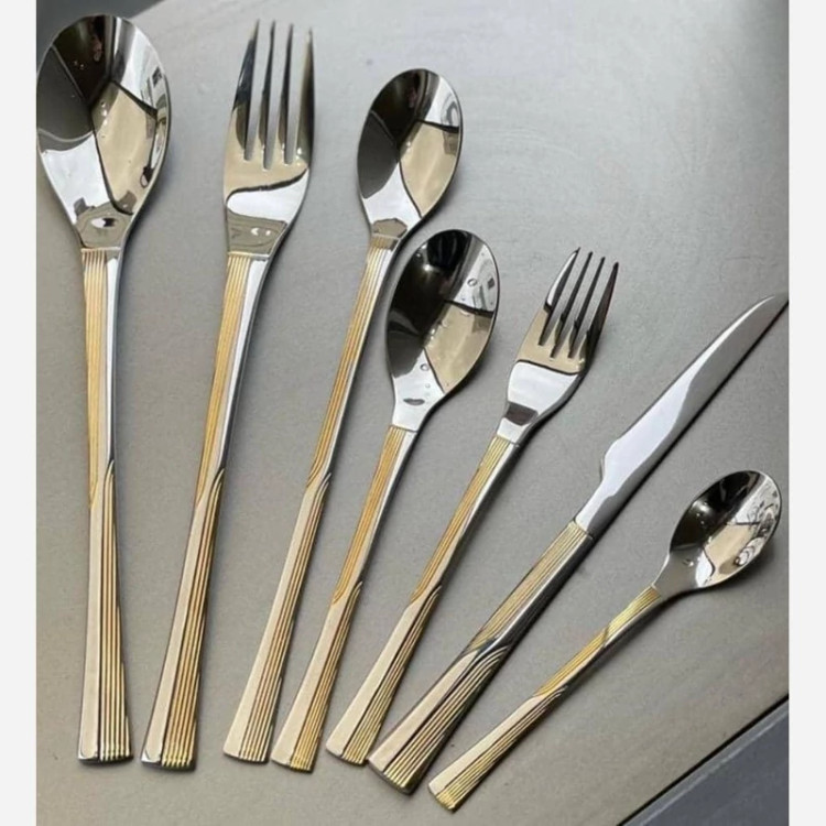 سرویس قاشق و چنگال 12 نفره یونیک نیمه طلایی مدل دهانه اروپایی