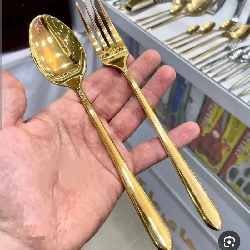 قاشق و چنگال طلایی 4 میل یونیک(کارتن سفید)